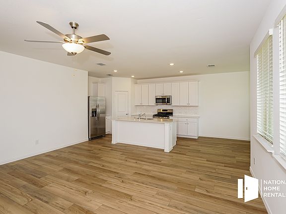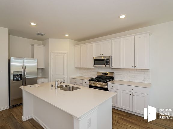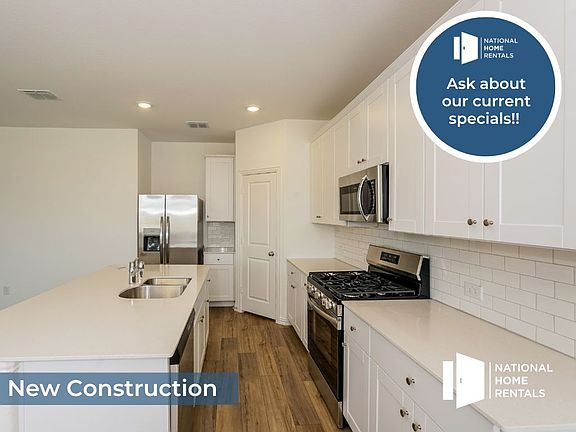 Welcome Home! At National Home Rentals, we offer residents premier homes to meet your family's needs. This home features 3 bedrooms and 2 bathrooms with upgraded finishes and SmartHome technology to control home access and temperature remotely. Step into this newly built, architecturally stunning home, where every detail is crafted for a luxurious living experience. At the heart of this home is the chef-inspired kitchen, complete with a versatile center island that seamlessly transitions from a breakfast bar for your morning coffee to a social hub for midnight snacks. Outfitted with high-end appliances, a designer faucet with pull-down spray, and elegant flooring, this kitchen combines functionality with sophisticated style. The adjacent dining area is bathed in natural light, making it the perfect spot for sunny brunches or festive weekend lunches. A conveniently located door leads from the breakfast nook to a covered patio, offering delightful options for outdoor dining and entertainment. The family room, a haven of relaxation, invites you to unwind with loved ones or host memorable gatherings. Its open layout flows into other living areas, creating a unified space that encourages shared moments and leisure. Privately situated in a quiet corner of the house, the owner's suite is a sanctuary of tranquility, featuring a serene bedroom, a spa-like bathroom with double vanities, designer fixtures, and a full-width mirror that enhances the refined atmosphere. The suite also includes a spacious walk-in closet with stylish wood shelving for organized storage. This home includes two additional bedrooms, each equipped with walk-in closets for optimal organization. The third bedroom, centrally located, is ideal as a children's room or a home office, offering flexibility to meet your changing needs. Additional features include low-maintenance vinyl windows throughout and a full bathroom nestled between the secondary bedrooms, equipped with a vanity offering ample storage and a combination tub and shower with chic ceramic tile surround. With three bedrooms and generous living spaces, this home is perfectly suited for families or those seeking an extra touch of comfort and elegance. **Don't miss the opportunity to experience this exquisite home. Book a tour today and see how perfect this home could be for you before it's too late Find your next home and experience high-quality living with National Home Rentals. Visit our website to easily schedule a self-guided tour, submit a rental application, or browse all available homes. Self-guided tours are offered 7 days a week from 8AM-8PM. Use your smartphone and payment method to sign up online and go see the house at your convenience. Schedule today or complete the form to receive more details. Our Residents will enjoy our complete Resident Benefits Package which includes Smart Home, automatic air filter delivery, pest control, renters insurance, and more! This package is required for a rental lease at an additional monthly cost ranging from $54.95 to $69.95. Ask our leasing team about how you can use Leap to satisfy your deposit requirement and reduce your move-in fees. National Home Rentals is an equal housing lessor under the FHA. Applicable local, state and federal laws may apply. To rent this home, you are required to submit a rental application and pay an application fee. Applications are subject to qualification requirements. Additional terms and conditions apply. Every effort is made to provide accurate details for the home, but total square feet is estimated and changes to the home can occur after photos are posted. Select photos may provide you with samples of our standard finishes/packages and not always exact to this rental home. National Home Rentals does not rent homes through Craigslist, Facebook, AirBnb or VRBO, and will never ask for rental payments through payment applications including Zelle, Venmo or CashApp. The rental price and availability of the home is subject to change without notice. Prices reflects the Net Effective Rent after factoring in concession offers on this home (if applicable) over a 12 month period. To schedule a self-showing or apply, visit our website. Photo Disclaimer: These images are meant to be a representation of this particular floor plan and are not intended to provide a perfect match to the actual product finish.