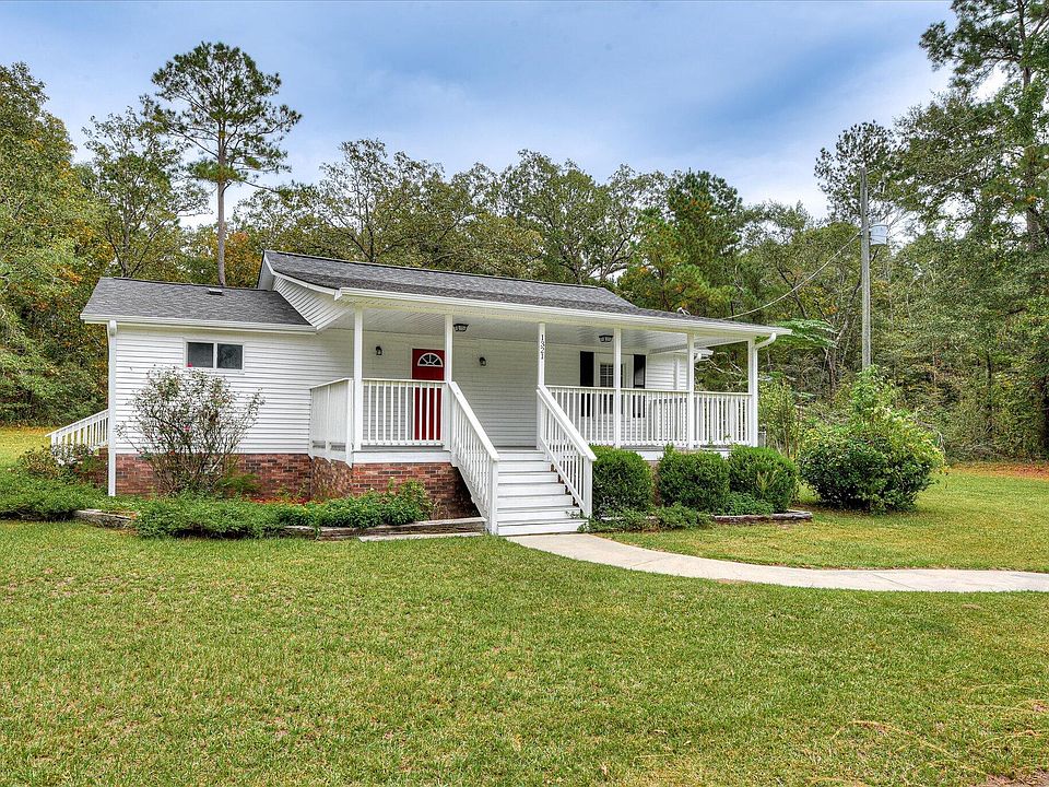 Tucked away off the main road, this beautifully renovated 2-bedroom, 2-bath modular home sits on 6 peaceful acres in Jefferson County (includes approx 1 acre pond). The open-concept layout connects the living, dining, and kitchen areas, featuring solid wood painted cabinets, granite countertops, glass tile backsplash, and stainless steel appliances. Updates include new exterior doors, entry steps, railings, roof, and gutters. Enjoy relaxing on the large 12' x 28' covered front porch overlooking a small pond. A 32' x 50' metal shop with poured concrete floor and roll-up doors on both sides provides excellent space for storage, hobbies, or a home business. This move-in ready property offers the perfect blend of modern comfort and rural charm.