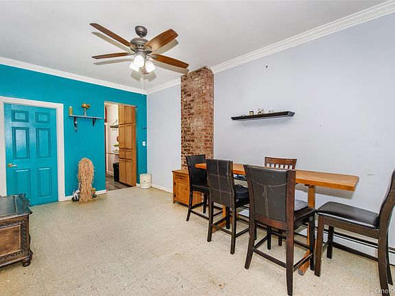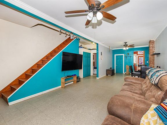 Welcome to this charming three-level home, ideally located directly across from P.S. 134. This bright, airy residence offers an open-concept living, dining, and kitchen area, perfect for everyday living and entertaining. The kitchen seamlessly connects to the living and dining spaces, creating an inviting atmosphere. The main level also features a full bathroom and a generously sized bedroom, offering convenient one-level living for guests or multi-generational families. The second floor includes two spacious bedrooms filled with natural light and an office area, ideal for working from home or creative projects. A second full bathroom completes this level. The versatile lower level has a separate front entrance and is currently being utilized as a gym and home office with a half bath. Located near the #2 and #5 subway lines, you can reach Manhattan in under 10 minutes perfect for city commuters. Walking distance to The Point and local parks and shopping make this home a true gem!