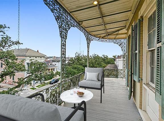 An entertainer's dream! Don't miss this incredible property standing on the corner of Chartres and the famous Esplanade Avenue. Step into the heart of the French Quarter and discover this stunning 2 bed, 2 bath condo that spans the top two floors of this New Orleans mansion. Its' standout feature is the wrap around balcony offering views of the city skyline and tree tops. Enjoy your morning coffee or glass of wine at sunset while soaking in the sights and sounds of the city. The spacious living area's centerpiece is the gorgeous marble fireplace highlighted by incredible natural light from walls of windows. The eat in kitchen is complete with modern appliances and sleek finishes with large island perfect for entertaining. Don't miss your chance to own a piece of French Quarter history with all the modern touches you desire just steps from renowned restaurants, boutiques, and cultural hotspots! Property is also listed for sale.