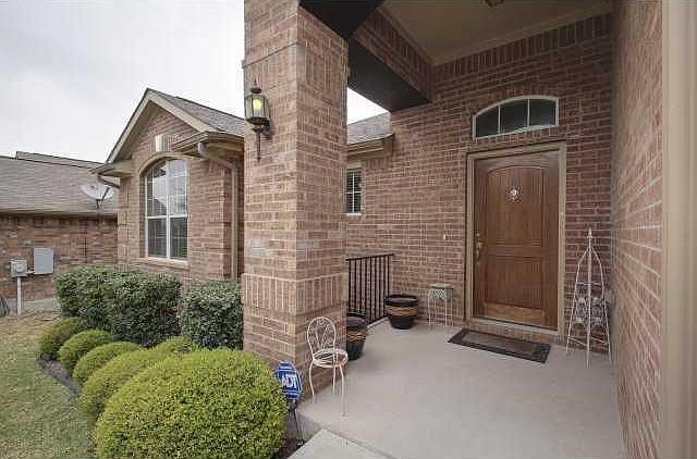 Gas appliances, full sprinkler system, fireplace, fridge and washer dryer. Oaks trees, beautiful landscaping, storage building. Rounded corners, soaring ceilings. 18 inch tile in entry, formal dining, open kitchen, breakfast area, hallway, utility and baths. Kitchen has granite counters and beautiful upgraded cabinetry. Large and luxurious master suite with crown molding, over-sized garden tub with glass block window, separate shower, separate sinks and a massive walk-in closet. Lawn care included.