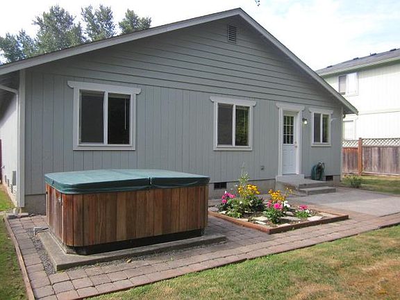 Price reduced again! Pride in ownership is obvious in this immaculate, well kept home built in 2001. This property boasts an open floor plan, vaulted ceiling, 2-car garage with 10' ceilings and a fully fenced private backyard with patio and hot tub. Ceiling fans, new hot water tank and dishwasher round out this conveniently located home in orchard estates, a well-planned, peaceful development tucked around a nature area. Sunset square, barkley village, bellis fair and i-5 are only minutes away.