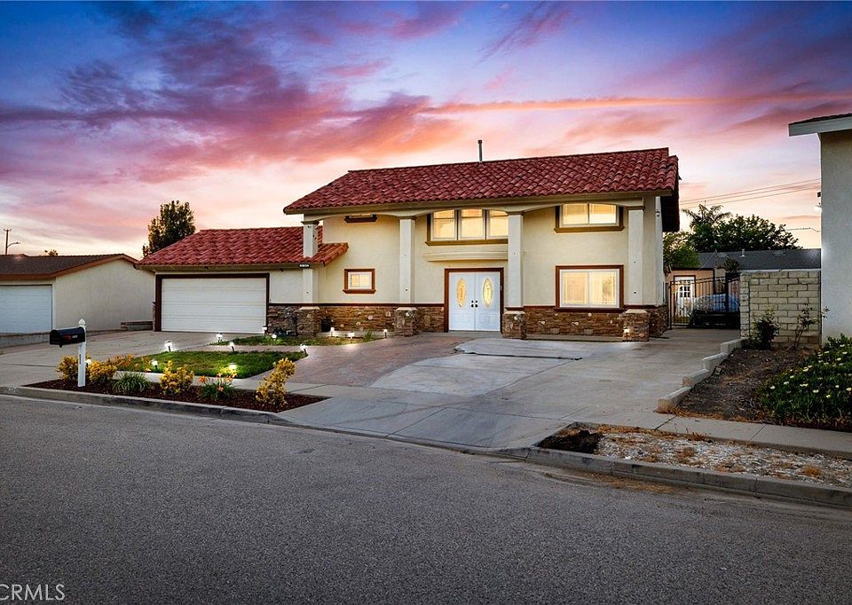 Discover this stunning two-story home featuring a durable tile roof and a dual air conditioning system for optimal comfort. The upgraded electrical panel and tankless water heater add modern efficiency. The front yard boasts elegant pavers, adding to the home's curb appeal. Inside, you'll find six spacious bedrooms and three updated bathrooms across 2,339 square feet of living space on a 7,405 square foot lot. The spacious kitchen is a chef's dream, complete with granite countertops. Two large bedrooms are conveniently located on the bottom floor, one of which includes a cozy fireplace. The main master bedroom downstairs offers a generous walk-in closet. In addition to the two bedrooms located on the main floor, you have a spacious sunroom, large enough to make it another bedroom or a gameroom. Enjoy the added benefit of RV access for your recreational needs. This home is in close proximity to Royal High School, making it ideal for families. The backyard is perfect for relaxation and entertainment, featuring an above-ground spa.