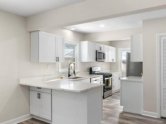 Tucked away on a quiet, private street you will find this beautifully remodeled ranch style home. Just minutes to downtown Hobart's dining and shopping and easy access to highways. This move in ready gem features 4 bedrooms and 2 full bathrooms.....one bedroom with an en-suite....offering flexibility for families of all sizes. Step inside to an inviting open concept layout where the brand new kitchen shines with a stylish peninsula with bar style seating and modern finishes....perfect for casual meals and entertaining. The generously sized bedrooms provide plenty of space for relation, work, or play, while the dedicated laundry room adds everyday convenience and efficiency. Enjoy peaceful mornings or relaxed evenings on the welcoming front porch and enjoy the serene views of the woods. A detached garage offers additional storage or workshop potential. Don't miss the opportunity to own this updated home in an amazing location.