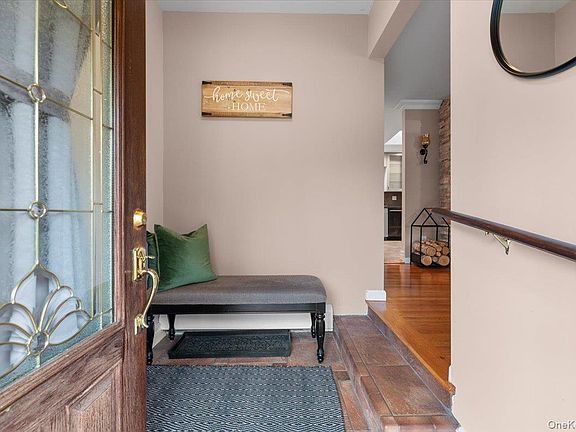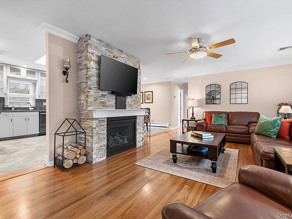 This home also includes a 200-amp upgraded electric service, two-zone heating, central air conditioning with a new air handler, natural gas for heat, cooking, and fireplace, new front siding installed in 2025, power shades, a smart thermostat, in-ground sprinklers, brand-new attic insulation, a ten-year-old roof, and low taxes of $11,472 before STAR.