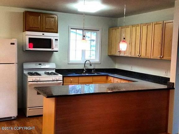 3 Bedroom, 1 Bathroom Duplex near JBER, Begich Middle School, Costco, Fred Meyer, Wal-Mart and Cheney Lake. Plenty of parking and storage. Shared fenced back yard. Newer Gas Appliances, Granite Counter tops, Washer/Dryer in unit, Dishwasher, Garbage Disposal and Laminate throughout the unit.