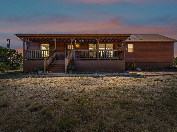 Your private Texas Hill Country retreat awaits you on 10.01 acres in Eastern Hamilton County. This custom-built, 1,008 square foot modular cabin offers a blend of modern comfort and country living, featuring a metal roof, cedar exterior, pine interior, two bedrooms, two baths, and an open plan living area with soaring ceilings and low maintenance luxury vinyl plank flooring. A large front porch looks out onto undeveloped surroundings, while the back porch faces a fenced yard complete with a 24 foot round above ground pool and storage shed.