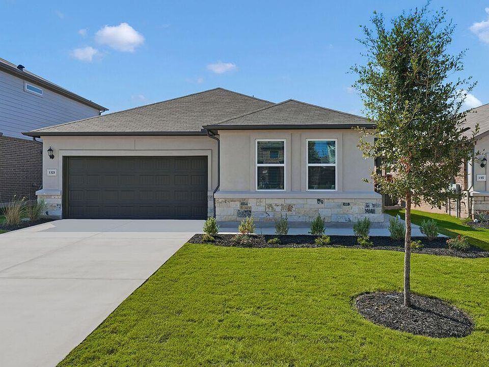 New Construction - Ready Now! Built by Taylor Morrison, America's Most Trusted Homebuilder. Welcome to the Bosque 2 at 1321 Purple Martin Drive in Lisso 50's! Step through the front porch into a welcoming foyer. Just down the hall are three secondary bedrooms, a full shared bath, and a convenient laundry room. At the heart of the home, the open-concept kitchen connects seamlessly to the dining and great room, with a covered patio just beyond. Tucked off the kitchen, the private primary suite features a spa-inspired bath and walk-in closet. Located in Pflugerville, Lisso is a charming new community of stylish single-family homes in the Austin area. Enjoy planned amenities like a shaded pavilion, Junior Olympic pool with beach entry, and fun playscapes. Discover even more reasons to love living here below. Additional Highlights Include: Whole house blinds and 12" pop-up ceiling at great room/dining room/primary suite.