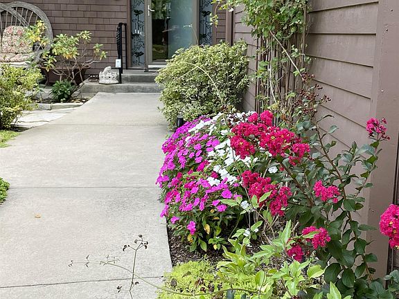 This captivating urban oasis sits on a wooded ½-acre lot just five blocks from the University of Kansas. The flower-lined walkway leads to a fenced flagstone patio with a vibrant waterfall feature, elevated flowerbeds, and an impressive 12-foot wind sculpture. Inside, the entry opens to a stunning two-story foyer with rounded walls. The kitchen features granite countertops, an expansive peninsula, upscale European cabinetry, oak flooring, and a distinctive oak ceiling. A walk-in pantry and appliance closet provide storage next to the garage. The formal dining room is highlighted by a rounded end wall, and the main-level study offers custom oak shelving. The sun-filled living room includes a wood-burning fireplace, an entertainment center, high windows, and a wet bar with lighted glass shelving, mini-fridge, and ice-maker. The kitchen opens to a three-story solarium with a glass ceiling and automated insulated panels. The panels open to capture winter sunlight and close at night or on cloudy days to prevent heat loss. Brick floors over a 9-inch concrete base provide thermal storage for passive solar heating. A three-story spiral staircase connects all levels, however, another convenient staircase is located at the front of the house. Upstairs, the Primary ensuite features a cedar ceiling, walk-in closet, cedar bookshelves, veranda, and two new skylights with shades and dual sinks, separate shower, tub, toilet, and bidet. Two bedrooms each include a ladder-accessed loft and newly replaced skylights with solar-powered blackout shades. A fourth bedroom has a shaded skylight, a winter closet (some cedar lined), and an exercise room (non-climate controlled) over the garage. Also upstairs is a convenient laundry room with cabinets, folding counter, and laundry basin. The lower-level features a vitalizing infrared sauna with adjacent shower, an entertainment area with 65” TV and built-in shelving, and a wet bar with full-size refrigerator, wine rack, and sink. Also included are a tiled recreation room, a full bath, and an ample storage area with shelving. The lower level opens to an 8-person Hot Springs spa and a 35-foot Trex deck, complete with Trex stairs leading down to the wooded backyard, where you’ll find a cozy firepit beside the creek.