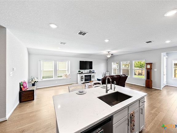 New Price! Reduced $20K! Stunning newer one story home in desirable Gruenefield neighborhood and is a terrific location where you can walk to Historic Gruene, and minutes from Creekside shopping, HEB, downtown New Braunfels and Canyon Lake. Thoughtfully designed/built for easy Texas Hill Country Living. Come fall in love with this spacious 3 bedroom/2 bath floorplan, boasting high ceilings, luxe vinyl plank floors throughout main living areas, and spacious owners primary suite and larger covered extended patio perfect for summer barbeques and stargazing. Chef's delight kitchen is ready for you to whip up one of your culinary creations on your gas range and amazing island, endless cabinets and counterspace, pantry and opens to the bright & Airy living area making the perfect place to entertain and gather. Your owner primary suite is nestled in the back of the home and offers a tranquil escape featuring luxe bathroom and walk-in closet that has the upgraded door for easy access to your laundry room from your owner's suite. The two secondary bedrooms, mudroom, water softener and 2 car garage complete this home. Come discover the GRUENE TX Hill Country lifestyle today and enjoy the music, dinner, events, tubing on the Guadalupe River, and all that this charming small town has to offer. Located minutes from IH35, offering easy commute to San Antonio and Austin.