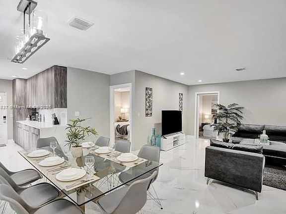 Experience modern coastal living in this beautifully renovated 4-bedroom, 3-bath home located in the coveted Hollywood Lakes neighborhood. Featuring 1,714 sq ft of thoughtfully designed living space, this move-in ready residence showcases a bright open layout, contemporary finishes, and seamless indoor-outdoor flow. Step outside to your private backyard oasis with a pristine two-year-old pool surrounded by lush greenery perfect for relaxing or entertaining. Just minutes from Hollywood Beach, shopping, and dining, this home offers the perfect blend of elegance, comfort, and location.