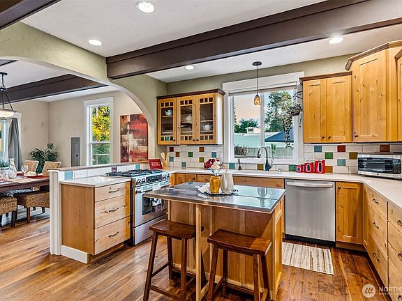 Beautifully updated urban farmhouse in Olympia School District. True city/country living. Mere minutes from services/downtown. Nearly an acre of lush rolling land. Plum, cherry, pear trees. Garden space. Fenced. Backs to serene, songbird wetland. Home completely remodeled--wiring, plumbing, windows, roof, etc. Stylish kitchen w/custom storage & display built-ins. Arched doorways, beamed ceilings, walnut flooring, cozy gas fireplace. Sprawling upstairs bedroom w/walk-in closet. Jr suite on main floor w/clawfoot shower. Second floor bathroom thoughtfully designed w/dual vanity & walk-in shower. Utility room w/Dutch door, sink, 2nd fridge. Gated entry, large porch, EV charger, generator-ready. Individual well & septic complete this rare find.
