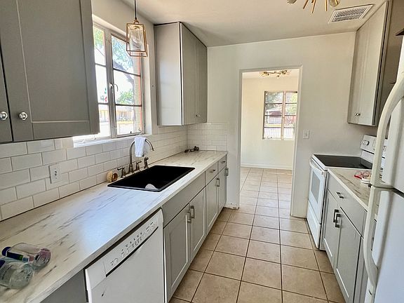 Inside, the home boasts a newly remodeled kitchen with updated appliances and ample counter space. The entire home is adorned with attractive tile flooring, lending it a modern and elegant feel throughout. Freshly painted walls complement the vibrant and lively atmosphere, while the large windows flood the interiors with plenty of natural light.