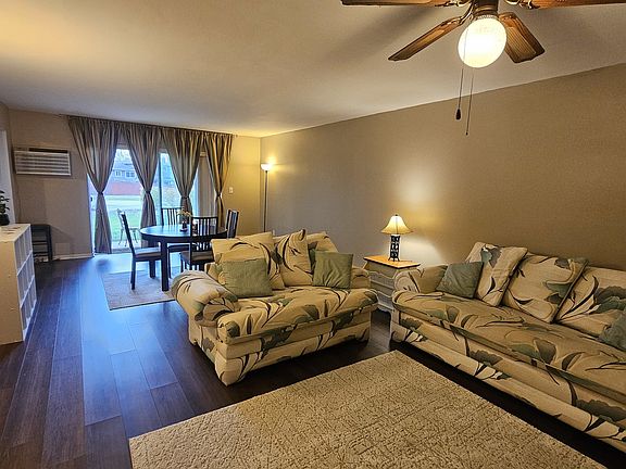 Welcome to this bright and beautifully updated first-floor residence in the highly sought-after Point West Condos. This elegant unit combines modern finishes with effortless convenience, offering a move-in-ready home in a premier location. Step inside to an inviting open-concept layout highlighted by brand-new, high-quality LVP flooring flowing seamlessly through the family room, dining room, and bedroom. Natural light fills the space, enhanced by sliding glass doors that lead to your private patio-perfect for morning coffee or relaxing evenings outdoors. The updated kitchen is designed for both style and functionality, featuring newer cabinetry, sleek granite countertops, and black stainless steel appliances. An eat-in area comfortably accommodates a small dining table, creating an ideal spot for quick meals or casual dining. Retreat to the refreshed bathroom showcasing granite counters and a beautifully tiled shower, providing a spa-like feel. Enjoy the peace of mind of a secure, fobbed-entry building and the unmatched convenience of being just minutes from the expressway, shopping, dining, and everyday essentials. This stunning first-floor condo combines luxury, comfort, and accessibility-truly a rare find in Point West.