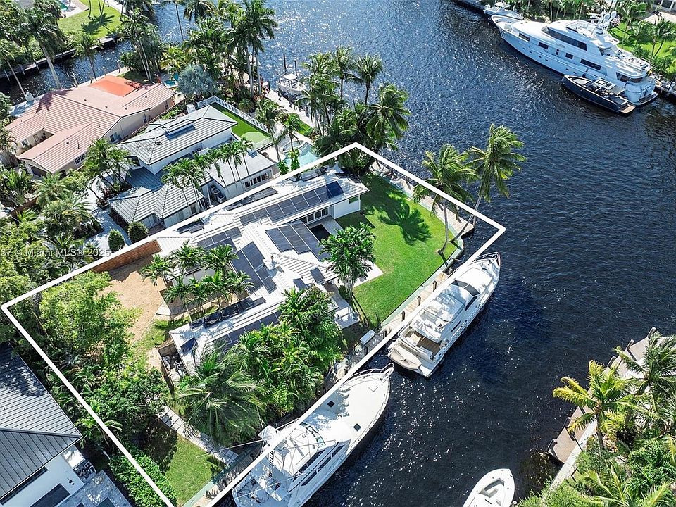 Boater’s paradise with 225 ft of prime water frontage on the South Fork New River, offering deep-water dockage with no fixed bridges, ideal for yachts over 100 ft and direct ocean access. This modern, fully rebuilt and expanded residence offers 2,489 sq. ft. of refined living, combining sophisticated design, smart technology, and effortless indoor-outdoor flow. Features include a custom DJ lounge with professional Pioneer sound system, LED Tulum-inspired ceiling, and laser projectors for an immersive entertainment experience. The chef’s kitchen with Sub-Zero & Viking appliances opens to the pool deck and tropical backyard with LED lighting and hot tub. Additional highlights: hurricane-impact windows, Lutron smart lighting, 400-gallon saltwater aquarium, new roof, and 2-car garage.