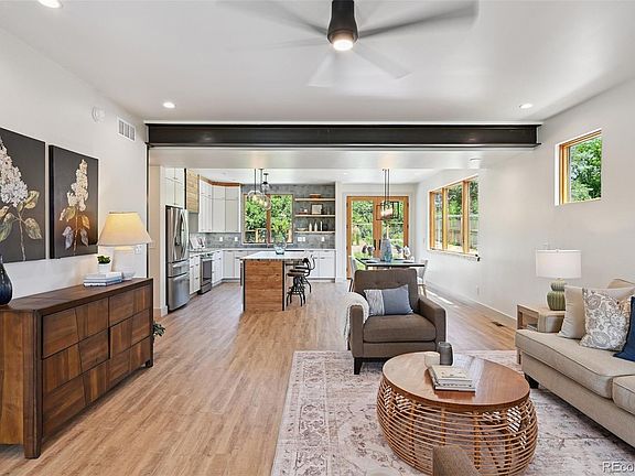 Welcome to this extraordinary, never-before-lived-in 5-bedroom/5-bathroom custom home—a modern masterpiece that blends high-end design, spacious living, and eco-conscious efficiency in one of Littleton’s most desirable neighborhoods! Set on a ¼-acre lot, this brand-new build delivers both curb appeal & thoughtful craftsmanship, just minutes from parks, dining, schools, and the Littleton Downtown Light Rail Station. The open-concept main level greets you with exposed beams, recessed lighting, and expansive windows, creating a warm, light-filled environment that flows into the gourmet kitchen—complete with a quartz eat-in island, stylish tile backsplash, crisp white cabinetry, and stainless appliances. The main level also includes a 1/2 bath, mudroom with built-in pet washing station, and access to the oversized 2-car garage equipped w/two 220V circuits for EV charging. Upstairs, you’ll find 4 spacious bedrooms, including TWO primary suites. One sits privately above the garage with its own full bath and walk-in closet—ideal for guests or a studio—while the main primary suite features vaulted ceilings, a luxurious 5-piece bath w/soaking tub, and a walk-in closet. The finished basement expands the living space with stained concrete floors, a wet bar, large family/rec room, a fifth bedroom, and ¾ bath—perfect for entertaining or working from home. Outdoor living shines with professionally designed landscaping, back patio, and drip irrigation for low-maintenance care. Energy efficiency is unmatched with heat pump systems, super-insulated walls + ceilings, sound-mitigating insulation between floors, owned 8.28 kW solar panels, and high-efficiency windows. Pre-wired for media throughout, this home is smart & stylish. Steps from Littleton’s best—including Lost Coffee, Littleton Brewing, Bemis Library, Littleton Museum, and top-rated LPS schools—this home offers the perfect blend of modern luxury & location!