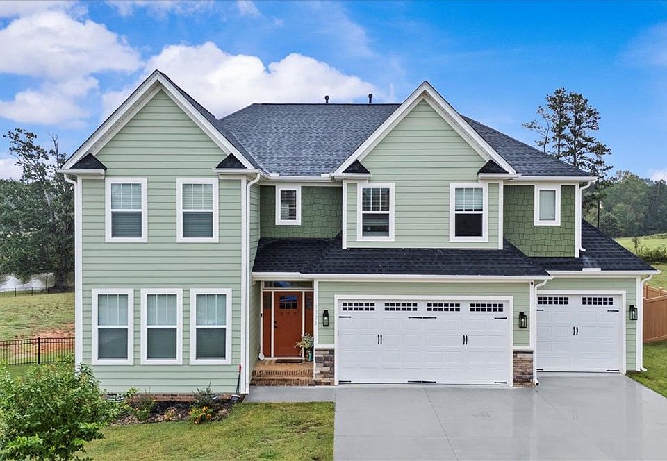 Nestled in the tranquil Alder Pond community of Campobello, South Carolina, this stunning 2024-built Craftsman-style residence spans approximately 3,800 square feet on a 0.81-acre lot, perfectly positioned to capture serene views of the community pond and distant Blue Ridge Mountain vistas. The exterior welcomes you with a charming covered front porch, durable Hardie Plank siding, and low-maintenance landscaping that enhances the home’s curb appeal.