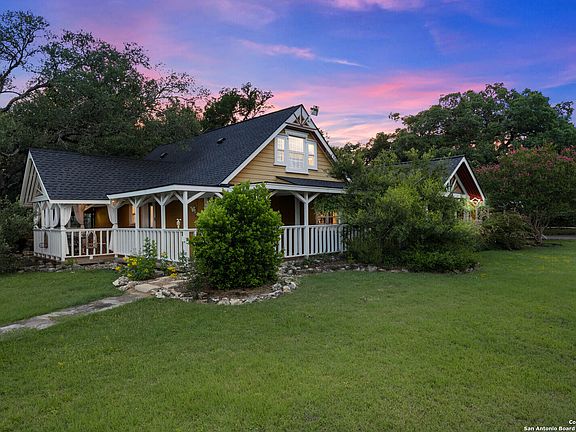 This stunning 3.54 acre Hill Country Oasis awaits its next owner. This beautiful home has been fully remodeled over the past few years. As you enter the large mudroom, you will find ample storage and plenty of space to utilize. The home natural flows into the great room, with timeless Saltillo tile, vaulted ceilings, custom ceiling designs and picturesque windows. French doors open into the heart of this home ~ the family room, dining and kitchen finished with upgraded porcelain flooring and a full kitchen remodel. With first floor secondary bedrooms and spacious laundry room, this home also has a beautifully renovated bathroom with an additional bonus room including custom cabinetry and maximizes space to the fullest. You'll notice the detailed trim and built ins as you approach the private owners' retreat, complete with a private balcony overlooking the gardens! This home is a horticulturist's dream! The gorgeous oak trees have been maintained professionally. You will notice, no detail was spared as you stroll through the gardens and the wrap around patios, you'll find gorgeous plants and built in lighting along your path. All plants are considered Xeriscape requiring minimal watering and maintenance. This home is set back from the street, offering a sense of privacy, with a fully fenced yard and plenty of the acreage left natural, yet well-manicured. This home offers 100% cement siding, 2023 upgraded roof replacement, 2019 full window replacement, custom 2 story shop with electricity and roof crosswalk for easy maintenance. See attached list for full home upgrades. This home is in Comal ISD and proudly feeds into Smithson Valley High School. Located in the highly desired Guadalupe River Estates / Cypress Springs community offering River access, parks, pavilion and more!Open House 07/26 5-7pm, 07/27 12-2pm and 07/28 11am-3pm.