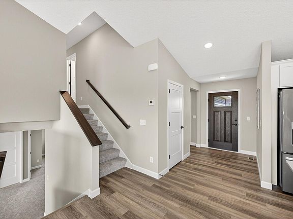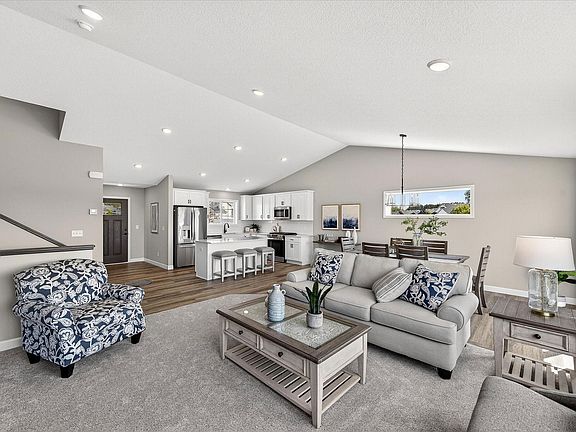 JP Brooks presents the Maplewood three level split home with finished lower level on a looking out with a finished basement on a lookout lot in the Desirable Fairway Greens North community in Isanti! Upgraded painted cabinets with crown molding, hardware, quartz countertops, SS appliances, & vaulted ceiling in kitchen, dining & living room area. Open living room with fireplace. Primary bedroom with a private bath, a tub and shower combo & double vanity. Finished lower level includes a spacious family room, 4th bed & 3/4 bath, & walkout lot. Pictures, photographs, colors, features, and sizes are for illustration purposes only and may vary from the home that is built. Desirable Fairway Greens North community with nearby Rum River BMX, Isanti Rodeo Dog Park and many more! UNDER CONSTRUCTION - April 2026!