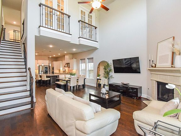 Located in a gated community, this Darling Homes beauty sits on a prime lot with no backyard neighbors, backing to greenspace leading to the neighborhood playground, pool, and clubhouse. Open-concept design boasts soaring ceilings, engineered wood floors, and a sun-filled living room with gas fireplace. Chef’s kitchen featuring a large island and stainless steel appliances. Refrigerator, W/D included. Luxurious primary suite with plantation shutters, spa-like bath, and a huge walk-in closet. Flexible home office (possible 2nd bdrm) is also downstairs. Upstairs is a spacious game room with dual French doors open to a Juliet balcony overlooking the living. Large secondary bedrooms and 2 full baths up. Outdoors, enjoy a covered patio, outdoor kitchen, lush landscaping, and sprinkler system. An oversized 2-car garage includes epoxy flooring plus additional storage for a golf cart, bikes, or more. Located in the Energy Corridor near top-rated schools, private schools, shopping, and dining.