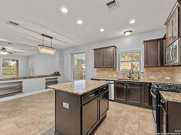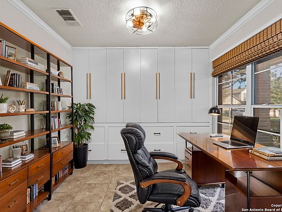 OPEN HOUSE Thursday 3/13 from 4:00PM- 6:00 PM! Elegance and comfort define 13210 Sabine Parke, a beautifully designed home in the desirable Remuda Ranch community. This 3 bedroom, 2 bathroom residence features a stunning front office with built-in luxury shelving, perfect for work or organization. The open floor plan showcases a spacious kitchen with an island, additional custom shelving, and a full dining area ideal for gatherings. The gorgeous primary suite highlights bay windows overlooking the backyard, a spa-like bathroom with a garden tub and separate shower, and a large walk-in closet with built-in wood shelving. Outside, the cozy backyard oasis offers already planted trees and shrubs, an extended patio, a luxurious inground pool with a heater, and a hot tub, creating the perfect space to unwind. Enjoy added comfort and efficiency with solar panels, a water softener, and solar screens on all windows. The backyard also features Bluetooth speakers, while the sprinkler system ensures effortless lawn care. Residents also enjoy access to a community pool, park/playground and bbq pits, making this home a true standout.