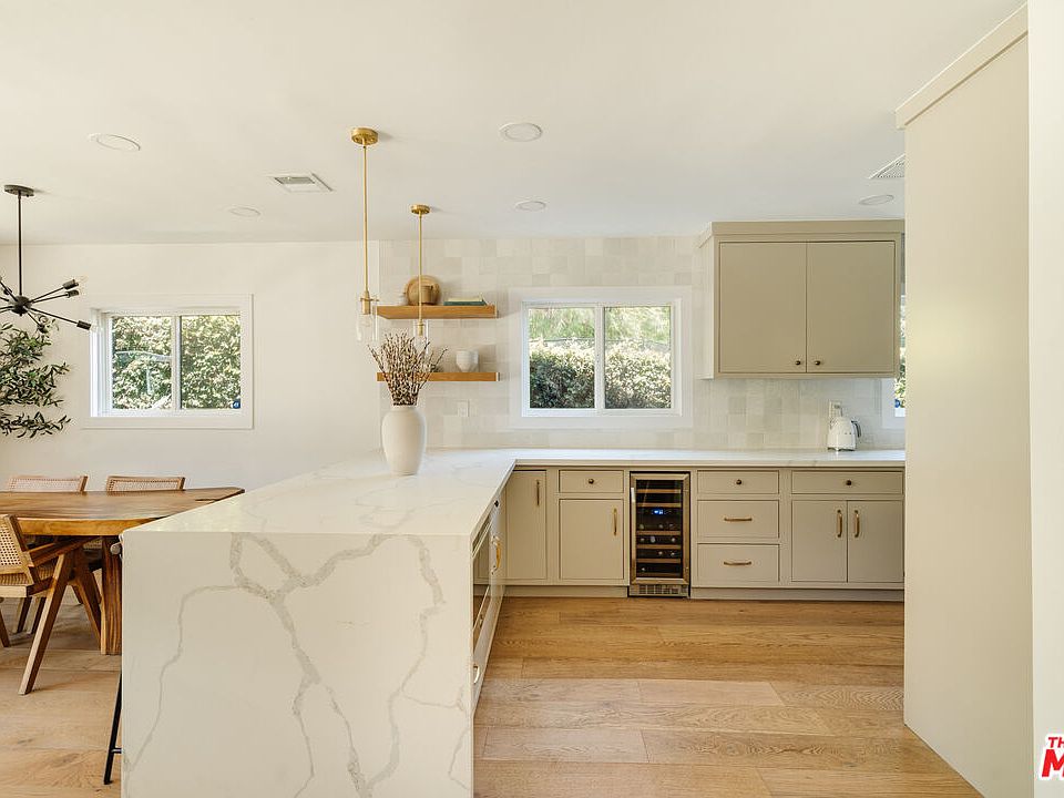 Tucked away on a tranquil cul-de-sac in the heart of Sherman Oaks, this stunning, gated retreat exudes modern sophistication and California charm. Thoughtfully reimagined by a designer's touch, the residence showcases an effortless blend of style, comfort, and functionality. Inside, soaring vaulted ceilings and warm wood floors frame an open-concept living space bathed in natural light. The seamless flow from the living and dining areas to the outdoors invites year-round entertaining and easy indoor/outdoor living. The home features three spacious bedrooms and three beautifully appointed bathrooms. Beyond the glass doors, discover a private backyard oasis lushly hedged and illuminated by soft ambient lighting, creating a cozy, resort-like setting. An outdoor bar and built-in grill complete this dreamy space for evening gatherings under the stars. Ideally located near Ventura Boulevard's vibrant shops and restaurants, the Sportsmen's Lodge, and the Westfield Fashion Square, with convenient access to the 101 and 405 freeways, this exceptional home offers the best of Sherman Oaks living. Private, stylish, and effortlessly inviting.