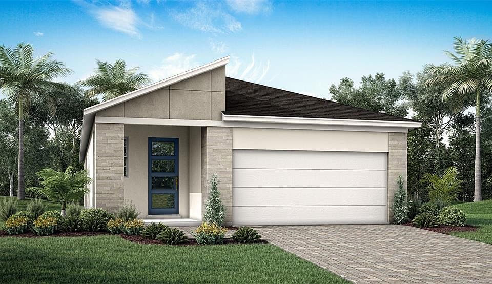 Under Construction. The Pelican is a spacious and versatile 1,787 square foot single-story home that perfectly combines style, function, and modern convenience. Designed with an open concept layout, this home features three bedrooms, two full bathrooms, and a two-car garage. At the heart of the Pelican is a well-appointed L-shaped kitchen that caters to both everyday living and entertaining. A large island with a breakfast bar seats up to four, while a full wall of cabinets and countertops offers abundant storage and workspace—perfect for housing small appliances and preparing meals. A pantry adds even more storage convenience. The kitchen opens seamlessly into the dining area and remains visible from the expansive great room, creating one large, cohesive space for gathering and relaxation. With white shaker style cabinets topped with Frost White quartz countertops, this bright and airy kitchen offers plenty of space for small appliances and prep! Natural light flows into the home through windows that line the exterior wall along the dining area, and large glass sliders in the great room open to a covered lanai. This layout invites a strong connection to the outdoors and provides an ideal setting for indoor-outdoor living. All bedrooms are located on one side of the home, with the primary suite on the back of the home for added privacy. The primary suite is a tranquil retreat, complete with a luxurious en suite featuring split vanities, a glass-enclosed shower with a high-set privacy window, a private water closet, and a large walk-in closet. Bedrooms two and three, situated at the front of the home, have easy access to the full hallway bathroom, making it ideal for guests or family. A convenient powder room is located off the foyer, offering an additional level of privacy and function. Throughout the Pelican, two extra closets provide added storage, ensuring that everything has its place. This home is HERS-rated for energy efficiency and includes smart home features for enhanced comfort and convenience. Located in the highly desirable master-planned community of Crosswind Ranch, residents enjoy miles of walking trails and access to an upcoming amenities center featuring pickleball courts, a resort-style pool, cabanas, a paw park, and more. The Pelican is the perfect home for those seeking modern, low-maintenance living in a vibrant and welcoming community. Photos, renderings and plans are for illustrative purposes only and should never be relied upon and may vary from the actual home. Pricing, dimensions and features can change at any time without notice or obligation.