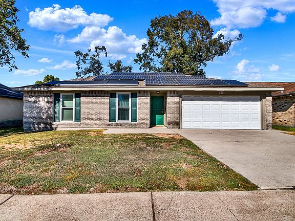 Welcome home to 13211 S Thorntree Dr! This charming 3-bedroom, 2-bath residence offers comfort, efficiency, and modern convenience in a well-established Houston neighborhood. Featuring an open-concept living and dining area with abundant natural light, this 1,176-sq-ft home is perfect for both everyday living and entertaining. Enjoy lower utility bills with installed solar panels and energy-efficient features throughout. The kitchen boasts ample cabinet space and flows easily into the main living area. The spacious primary suite includes an en-suite bath for privacy, while two secondary bedrooms provide flexible options for family, guests, or a home office. Outside, a fenced backyard offers room to relax, garden, or play. Conveniently located near Beltway 8, I-10, shopping, and schools—this home is move-in ready and a great value in the area!