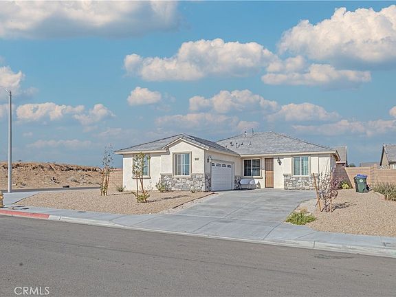 Outside, enjoy a low-maintenance desert landscape with a clean curb appeal and a wide driveway leading to a two-car garage. Situated in a newer neighborhood, this home provides both style and functionality in a prime location.