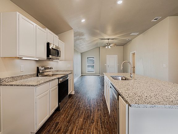 ? Brick exterior ? LED down lighting along the front exterior of the home ? Spacious kitchen island ? Stainless steel appliances ? Gas range ? Granite countertops throughout ? Secluded master suite with walk-in closet ? Cozy Classic interior package ? Natural Pine luxury vinyl plank flooring in common areas and bathrooms ? Azure carpet in bedrooms and closets ? Matte black vanity lighting ? Timeless matte black plumbing fixtures