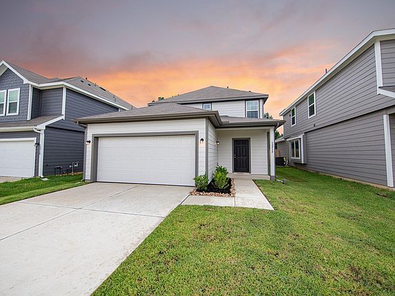 Love where you live in River's Edge in Conroe, TX! Home is zoned to the excellent Woodlands schools - Eissler Elementary School, Mitchell Intermediate School, McCullough Junior High School, and Woodlands High School. The Woodland floor plan is a spacious 2-story home with 4 bedrooms, 2.5 bathrooms, game room, and a 2-car garage. This home has it all, including vinyl plank flooring throughout the first-floor common areas! The gourmet kitchen is sure to please with 42" cabinetry, granite countertops, and stainless-steel appliances! Retreat to the first-floor Owner's Suite featuring granite countertops, a sizable shower, and a spacious walk-in closet. Secondary bedrooms have walk-in closets, too! Enjoy the great outdoors with a sprinkler system, covered patio, and no back neighbors! Don't miss your opportunity to call River's Edge home, schedule a visit today!