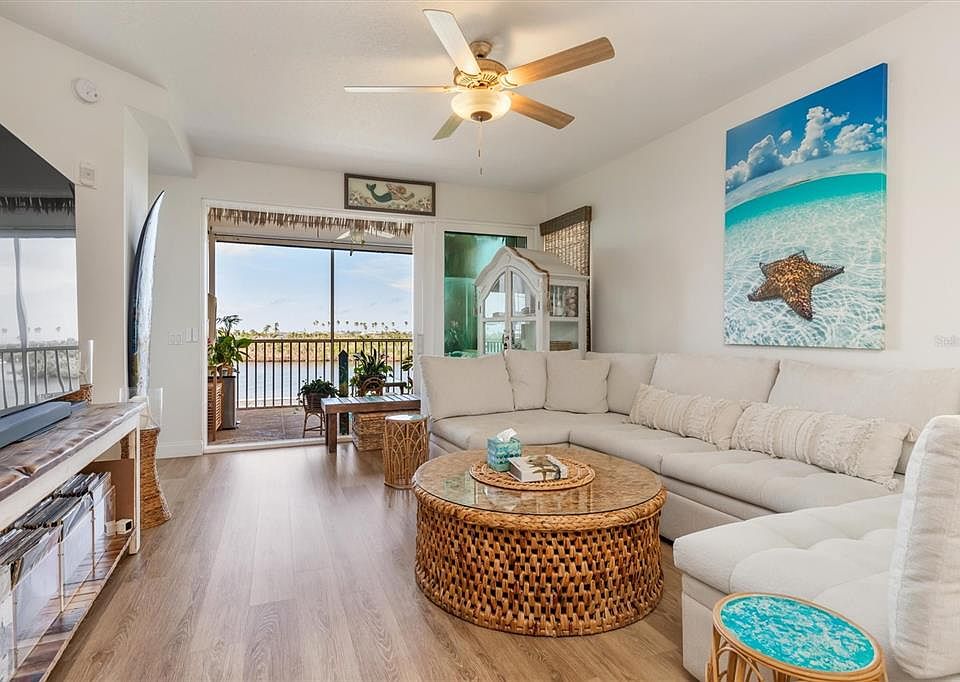 Coastal luxury meets everyday convenience at Boca Vista Harbor. This rare end-unit condo is perfectly positioned to capture sweeping views of Coral Creek, Gasparilla Sound, and the Intracoastal, all just minutes from Boca Grande’s pristine beaches, shops, and dining. Featuring 3 bedrooms and 2 bathrooms, this home blends modern updates with resort-style amenities. Inside, you’ll find driftwood luxury vinyl flooring throughout, fresh interior paint, updated 5.5” baseboards, new LED lighting and ceiling fans. Enjoy lots of natural light with three additional windows that this end unit offers. The redesigned kitchen offers a spacious, open layout with a new LG stainless steel appliance package. The primary suite is a peaceful retreat with stunning water views, 2 large walk-in closets, and an en-suite bath featuring dual vanities and a walk-in shower. Outdoors, the screened lanai, with hurricane shades is ideal for morning coffee or evening sunsets, and all windows and sliders are hurricane impact rated for peace of mind. A private 1 car garage with new opener adds convenience. Recent exterior updates include a new roof, new stucco siding, refinished pool and spa, and refreshed tropical landscaping. Boca Vista Harbor amenities include a gated entrance, heated pool and spa with poolside grills, tennis and pickleball court, kayak and paddleboard launch area, and direct access to a full-service marina with boat slips available when offered. This condo is ideal as a primary residence, vacation retreat, or lucrative rental, with minimum 3 day rentals permitted. Water, sewer, and trash are included in the HOA fee. Start living the Boca lifestyle and schedule your private showing today!
