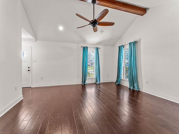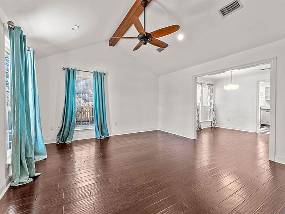 This beautifully updated 3 bed, 2 bath home is move-in ready with so many charming details! Throughout the home, beautiful engineered hardwoods flow seamlessly—no carpet—making it perfect for kids and pets. The kitchen shines with granite countertops, stainless steel appliances, and white cabinetry with glass accents, while the spacious living room is filled with natural light, featuring a vaulted ceiling with a wood beam that adds great character—details you won’t often find in a starter home. The primary suite offers a large bedroom with a tray ceiling, a walk-in closet, a garden soaking tub, and a separate shower. Fresh neutral paint, modern updated bathrooms, and spacious secondary bedrooms enhance the home’s appeal. Outside, the charming front porch adds to the great curb appeal, and the backyard is perfect for entertaining. Don’t miss this move-in-ready gem—schedule your showing today!
