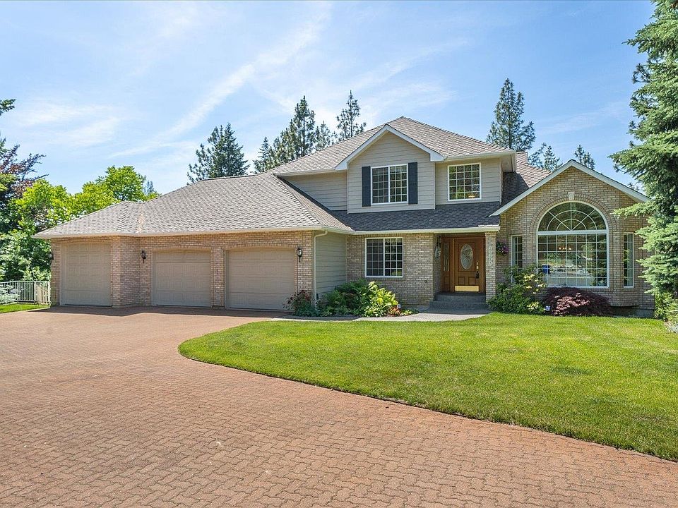 SPOKANE RIVER VIEWS & MOTIVATED sellers! Meticulously maintained 3,700 SqFt home on premiere view lot in luxury neighborhood of Arrowhead Point & Mead SD! This 1-owner home backs to Little Spokane River, with gorgeous views & peaceful privacy on quiet cul-de-sac. Timeless appeal w/ so much natural light! 3.5 baths & 4 bedrooms (1 non conforming w/ space to add 1 or 2 additional bedrooms). Main floor welcomes you w vaulted ceilings & refinished hardwood floors, formal & informal dining areas, an office (4th bedroom), & spacious kitchen w/ Silestone counters, bar seating, instant hot water, & under cabinet lighting. Enjoy 2-story deck w/ retractable awning. Primary suite has double closets & sinks. 3 living spaces, 2 gas fireplaces, HUGE bedrooms, central VAC, 3 car garage (1 w/ RV door), 2 sheds attached to house, & gardening space w/ raspberries & fruit trees. Located 5 min from shopping, Wandermere Golf Course & the Kalispel Golf & Country Club!