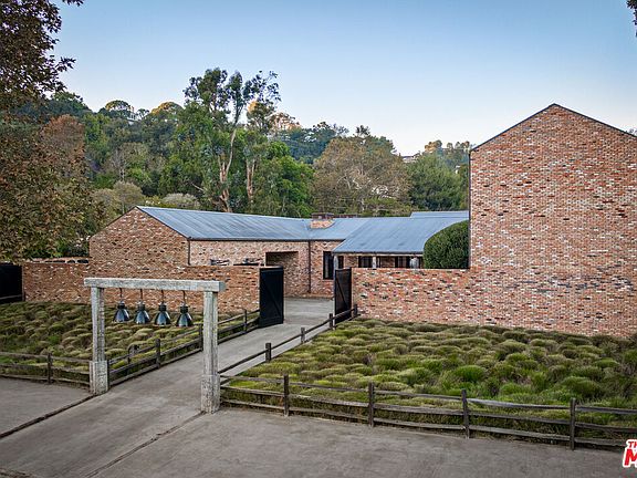 This extraordinary home is a rare architectural masterpiece built by a Hollywood Icon. Nestled in the heart of prestigious Sullivan Canyon, one of LA's most revered equestrian enclaves, the residence is not only grand but extremely private and eclectic. The estate is adorned with thousands of hand-selected vintage Chicago bricks and a mix of reclaimed materials that define its unmistakable character. Cascading beams frame the kitchen and living spaces, setting the tone for a home that feels both distinctive and intimate. Featured in the acclaimed Rizzoli book "The House That Pinterest Built," the estate has been celebrated in numerous design publications and appreciated by those who recognize its artistry. This residence is more than its architecture and craftsmanship. It is a reflection of care, creativity, and a life lived with intention. This Sullivan Canyon estate offers a rare opportunity to be part of something truly special.