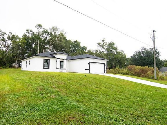 Brand-New Construction • 4 Bedrooms • 2 Bathrooms • Marion Oaks, Ocala. Beautifully designed home located just minutes from I-75, shopping, restaurants, schools, and all essential amenities. Open-concept floor plan filled with natural light. The contemporary kitchen features white cabinets, quartz countertops, stainless steel appliances, and a spacious island. The living and dining areas flow seamlessly, creating a warm and welcoming atmosphere. The split-bedroom layout offers privacy, with a comfortable primary suite that includes two walk-in closets and an elegant ensuite bathroom with dual sinks, walk-in shower and a soaking bathtub. Outside, enjoy a generous lot with plenty of privacy and space for entertaining, gardening, or simply relaxing. Financing Incentives: 100% financing available (for qualified buyers) and a $10,000 seller credit toward buyer’s closing costs, prepaids, and other lender-approved fees. Don’t miss your chance to make this house your home. (All information provided is deemed reliable, but is not guaranteed and should be verified by buyers and their agents.)
