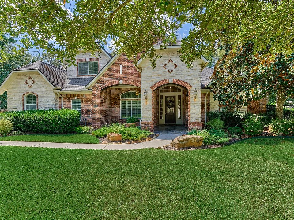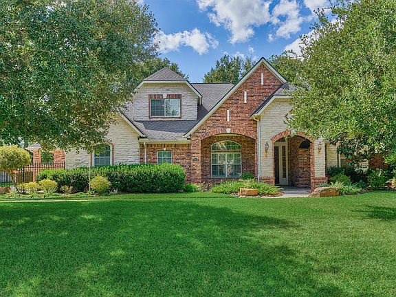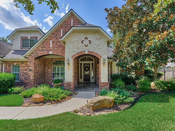 Stunning, Sought After 1.5 Story Home in Crighton Woods on 1/2 Acre Lot. Lovely Landscaping & Curved Walk Lead to Welcoming, Oversized Covered Front Porch. Elegant Travertine Floored Entry Opens to Study & Flows to Beautifully Appointed Formal Dining Room. Expansive Kitchen Features SS Appliances, Double Ovens, Raised Dishwasher & Breakfast Bar Open to Living & Breakfast Rooms. Living Room is Anchored by Fireplace & Walls of Windows Overlooking Outdoor Living Spaces. Primary Suite Has Sitting Room w/ Fireplace, Spacious Bedroom Area & Opens to Spa-Like Bathroom Which Features Dual Sinks, Vanity, Soaking Tub, Separate Shower & Updated Walk-In Closet. 3 Secondary Bedrooms are Conveniently Located for Maximum Privacy & Comfort. Upstairs Game or Media Room Await. Covered, Screened-In Patio Has Outdoor Kitchen & Ceiling Fans. 3 Car Garage w/ Epoxy Floor, Automatic Gate & Additional Parking Complete the Outdoor Space. Community is Located Near Historic Downtown Conroe, The Woodlands & I-45.