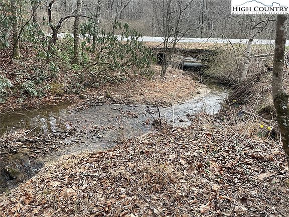This creek side mountain property is +/-5.07 acres and is made up of two joining parcels owned by the same owner. The parcels are located on a creek bottom that is in the flood plain. Buyer should check county building codes prior to purchase if a structure is planned. There is a section outside the flood plain on the western border that may be acceptable for conventional construction. It has a 20' deeded right of way running along the edge of the property used by a joining neighbor which eliminates the need for access drive construction that so many mountain properties require. Located only minutes off of US Hwy. 421 with Boone and Wilkesboro less than a half hours drive. Relax while taking in the sounds of a rushing stream on this easily accessible, creek side hide away.