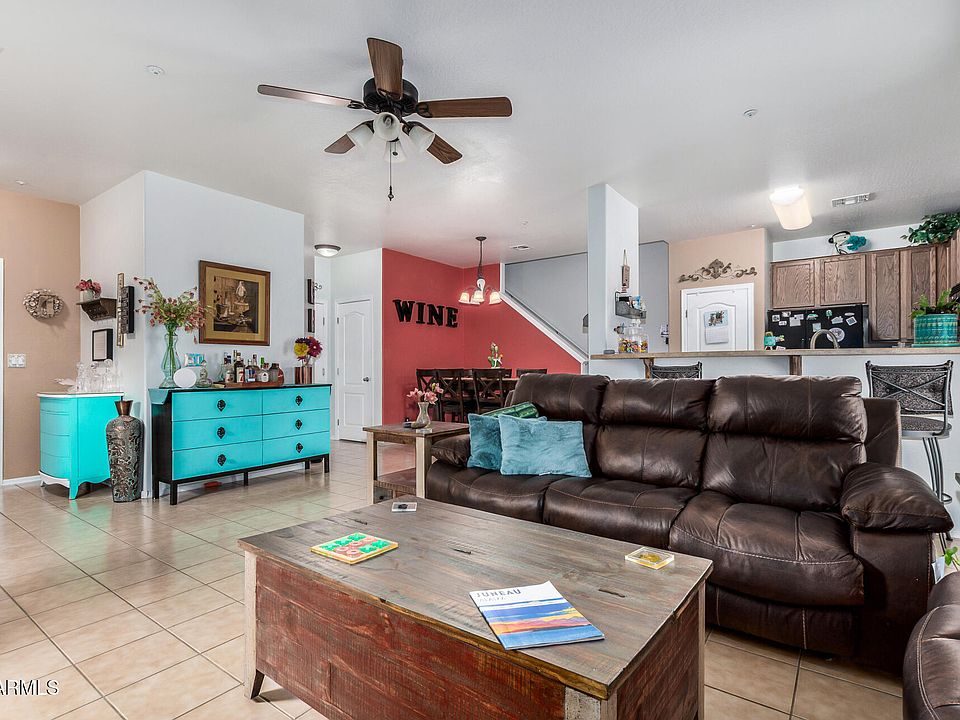 Welcome home! You will love this spacious townhome in gated community with Peoria schools. This functional open floorplan features a kitchen with a pantry, ample counter space & cabinets and breakfast bar overlooking the living and dining areas. The main level also includes a guest bath, ceiling fan & tile floors. The backyard offers ext cov'd patio, fenced yard, ready for your personal touches. The upper level has 3 bedrooms, 2 bathrooms, and laundry room. Master bedroom/bath features walk-in closet, ceiling fan, dual sinks, separate tub & shower. Add'l features include front security door, sunscreens t/o, owned R/O system & soft water system, 2-car gar w/opener. The community has green/picnic areas, playground for residents to enjoy. Near shopping, Peoria Sports complex and the 101