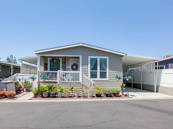 Seller motivated due to job transfer! Beautiful & Modern 2022 Manufactured Home in Los Coches Mobile Home Estates! This spacious and stylish 3-bedroom, 2-bath home offers 1,493 sq. ft. of comfortable living in the serene and well-maintained Los Coches Mobile Home Estates, a desirable all-ages community. Built in 2022, this move-in ready home features an open-concept layout with generously sized guest bedrooms and a private primary suite complete with a large walk-in closet and en-suite bathroom. The home is filled with thoughtful upgrades throughout, including an oversized AC unit that cools the entire house in just 20 minutes and a super high energy rating from the builder to help keep utility costs low. Windows & Natural Light Features This home is filled with natural light thanks to its exceptionally large 6’ x 3’ living room windows, a striking custom feature that floods the main living spaces with sunshine. Oversized windows are thoughtfully placed throughout the home, ranging in size, and designed to enhance both style and comfort. Paired with soaring 9-foot ceilings, these taller windows create an airy, open feel while maximizing light in every room. The kitchen showcases glass-pane cabinet doors, quiet self-closing drawers, accent lighting, and modern cabinetry that extends into the bathrooms for a cohesive design. Additional touches include awnings to help keep the home cool, two large sheds for storage, and a driveway that has been freshly painted for enhanced curb appeal. The semi-enclosed carport has been finished with fencing, lattice, and painted concrete, creating the look and feel of an inviting outdoor living space. Situated on a private lot in a quiet cul-de-sac, the property is fenced on three sides for added privacy and includes a beautifully landscaped yard with a peaceful side patio—perfect for morning coffee or relaxing afternoons. The extended driveway accommodates up to three vehicles, and three newer storage sheds provide plenty of extra space. Community amenities include an inground pool, hot tub, clubhouse, BBQ and picnic area, playground, and basketball court, offering endless opportunities for recreation and entertaining. Centrally located near Highway 8, schools, shopping centers, and restaurants, this home combines modern comfort, energy efficiency, and style in a prime location you will love to call home.