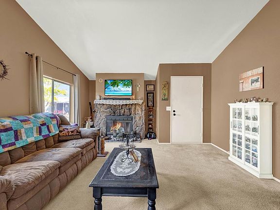 Ideally located at the top of the community with no rear neighbor, this home offers cool breezes and mountain views from a large covered porch. The country kitchen includes a breakfast bar and opens to a family/dining room combo, while the spacious living room, set apart for privacy, features a cozy fireplace. The master suite boasts dual sinks, a soaking tub, and a separate shower. A large carport accommodates 3 cars, plus 2 storage sheds. Wonderful all-ages community with fantastic amenities: inground pool, spa, clubhouse, basketball courts, BBQ/picnic area, and playground. Conveniently located near Highway 8, restaurants, and retail!