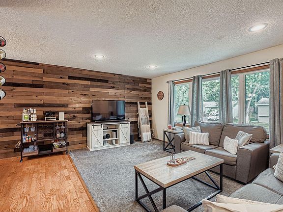 Well maintained 4 bedroom, 2 bath home in Champlin! Enjoy tons of curb appeal, tasteful landscaping, concrete driveway, a generous front patio and inviting walkway that leads you to the front door with Ring doorbell! Upstairs, enjoy a bright living room with a decorative shiplap wall that flows into the informal dining space. The kitchen features a floor-to-ceiling pantry, matching appliances with a new fridge and a new dishwasher! Enjoy built in shelving in the primary bedroom, along with another spacious bedroom up and an on-trend full bath. Downstairs, the lower-level family room is equipped with remote-operated lights and a heated fan, creating a cozy retreat, alongside two additional bedrooms and full bathroom. Step outside to your private backyard oasis, complete with a deck and trellis overlooking wooded views, a fully fenced backyard, storage shed, a fire pit, and a rain-protected cement patio under the deck. Bonus storage space is found in the easy-access attic storage, plus there's shelving and a workbench in the garage. Enjoy a prime location just a block from Paul Wethern Park with pickleball, basketball, baseball, and playground facilities, and minutes from downtown Anoka, Champlin dining and shopping, and the Mississippi River.