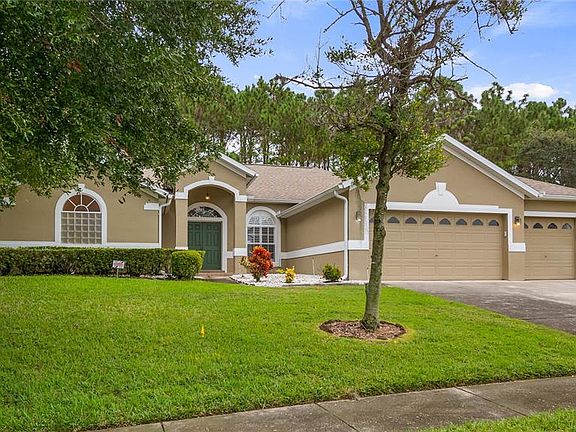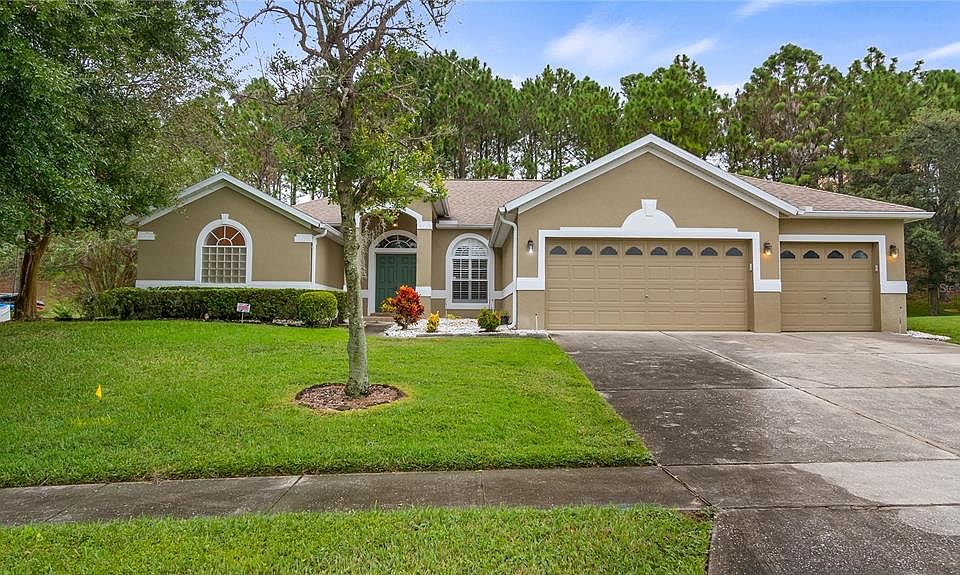 Welcome to this beautifully maintained 4-bedroom, 3-bathroom home located in the highly desirable Greater Pines community in Clermont. Step inside to a split floor plan offering both comfort and privacy. The inviting formal living room and dining room greet you as you enter. To the left, the spacious primary suite boasts a luxurious bathroom with dual sinks, a garden tub, and a walk-in shower. The heart of the home is the open-concept kitchen and family room, perfect for entertaining. The kitchen features granite countertops, an island, bar seating, a cozy breakfast nook and a gas stove, along with a gas water heater for efficiency. The family room opens up to a covered patio overlooking mature trees and a private backyard — ideal for outdoor relaxation. On the opposite side of the home, you’ll find three additional bedrooms and two full bathrooms, offering plenty of space for family or guests. The home offers great curb appeal with well-maintained landscaping and a welcoming front entry. The roof was done in 2020. The spacious three-car garage provides ample parking and storage. The backyard offers privacy with no rear neighbors and mature trees, creating a peaceful retreat. The neighborhood offers fantastic amenities including a community pool, tennis courts and a playground, perfect for active families. Situated conveniently near schools, restaurants, shopping centers, hospitals, and major highways like the turnpike Highway 50 and Highway 27, the location ensures ease of access to daily necessities. Additionally, being approximately 35 minutes from Disney and Orlando International Airport makes it a highly desirable location for both convenience and entertainment.