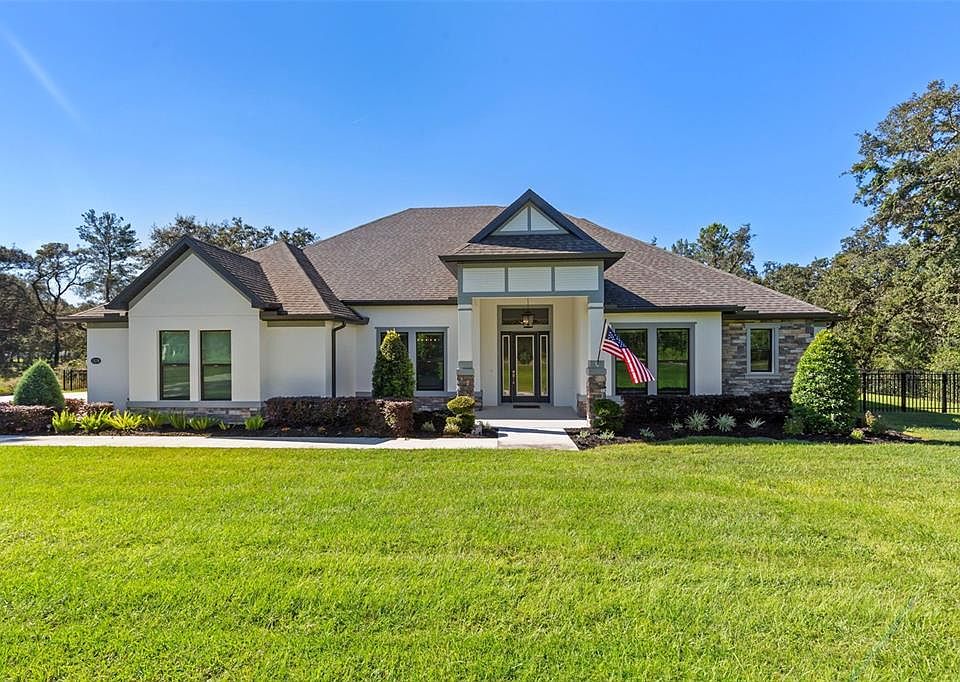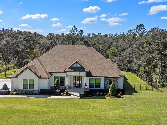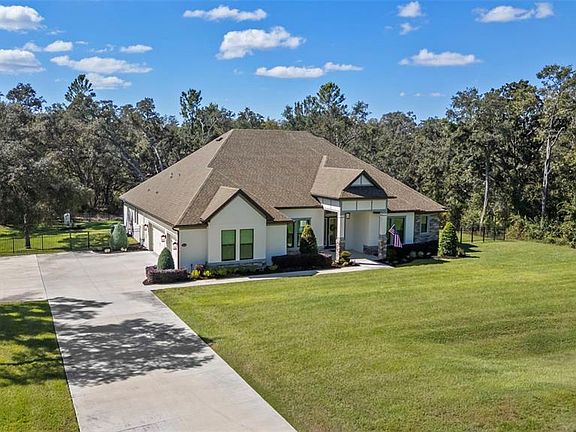 Stunning Equestrian Estate in the heart of Florida’s Nature Coast. Tucked within the premier Gated Equestrian Estate community Bella Terra, in the heart of Florida’s Nature Coast, this MOVE IN READY home radiates elegance. With lofty ceilings, a grand entrance, soft neutral tones, and abundant natural light, it exudes model-home charm. Luxury vinyl plank flooring graces the living areas, offering both durability and sophistication, while the expansive floor plan provides a wealth of flexible space, ideal for large families or those who delight in hosting gatherings. The heart of this home lies in its exquisite kitchen, a culinary haven adorned with lustrous Quartz countertops and Shaker cabinets crowned with elegant molding. A modern cooktop stove, built-in convection oven, microwave, and a brand-new dishwasher, installed in October 2025, elevate the art of cooking. Copious counter space and a walk-in pantry ensure effortless organization, while the kitchen’s open design overlooks the great room and the broad backyard, fostering seamless connection between spaces. The primary bedroom and bathroom form a serene haven of peace and tranquility, offering a luxurious retreat with soothing ambiance and elegant design. Two distinct office spaces offer versatility for work or creative pursuits, catering to the demands of modern life, and the three additional bedrooms, thoughtfully arranged in a split plan, offer exceptional privacy and comfort for family or guests. Step outside to a screened in lanai enhanced with an outdoor kitchen and fenced yard, where family and cherished pets may play freely amidst nature’s splendor. Here, one can bask in the tranquil beauty of the surroundings, enveloped by the serenity of quietude. This expansive estate, set upon one of the largest lots in the neighborhood—spanning an impressive 5.20 ACRES—offers boundless opportunities for outdoor activities. Envision a sparkling pool, equestrian stalls, paddocks, or workshops. No horses? No Problem- Design the garden of your dreams in this lush sanctuary! The property is primed for entertaining, with ample room to host grand holiday soirées or intimate gatherings under the stars. Built in 2023 this showcase home features upgrades that include an epoxy-coated screened patio with extra pad, extended irrigation, water softener and purifier, additional parking pad, for all of those holiday guests, and the new dishwasher. Perfectly situated between Highway 19 and the Suncoast Parkway, it offers quick commutes to Tampa or Spring Hill while remaining a serene escape. Minutes from shopping, dining, and entertainment, this golf-cart-friendly community features SIX MILES OF HORSE TRAILS and tranquil streets for walking or biking. This nearly new refined estate blends luxury, space, and serenity, awaiting your vision.
