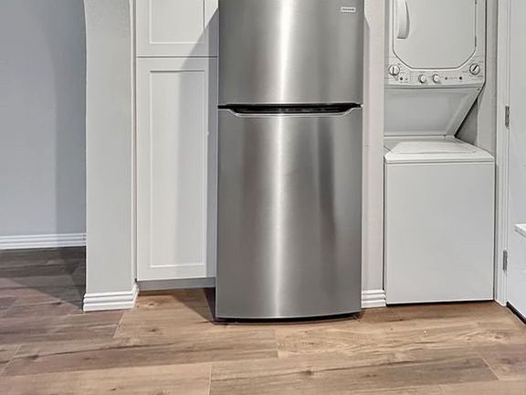 Both bedrooms are spacious and full of natural light, and the bathrooms feature a modern design with a relaxing soaking tub! A stackable washer and dryer are also included right in the unit!