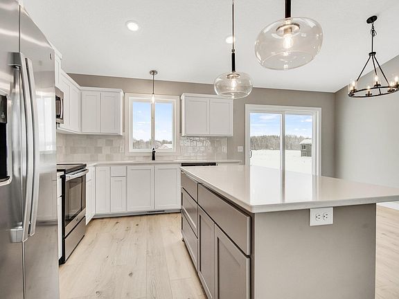 *Completed New Home* Stunning walkout rambler with full basement and all living facilities on the same level including laundry room! Home sits on a beautiful large lot interior features white enameled kitchen, vaulted ceilings, private master suite with stepin shower, dual sinks, huge walkin closet, grand kitchen with quartz countertops, tile backsplash, custom cabinets with slow closing doors and drawers and large entry foyer this home has been beautifully designed for natural lighting!