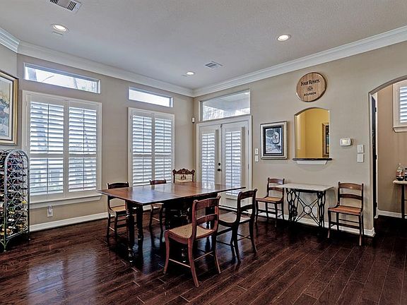 Great Investor opportunity with home leased until May, 2021... Upgrades include plantation shutters throughout , wood floors, stone fireplace w/remote controlled gas logs, elevator shaft, tank-less on demand water heater, walk-in dry bar w/iron gate entrance could easily be made into wine cellar. Large master suite w/high ceilings, lots of light, large walk-in closet, double vanities, jetted tub, separate shower, 2nd BR downstairs, has en-suite Bath & access to back covered patio w/recent brick-pavers that wrap around back and side of house. 3rd bedroom on 3rd floor could be child's room or office. This bedroom has it's own balcony overlooking green-space. Bathroom for 3rd BR is just around the corner and has connections for full size stack-able washer/dryer. Green space behind the house is the community area for this neighborhood and makes a nice buffer for the new construction behind it.