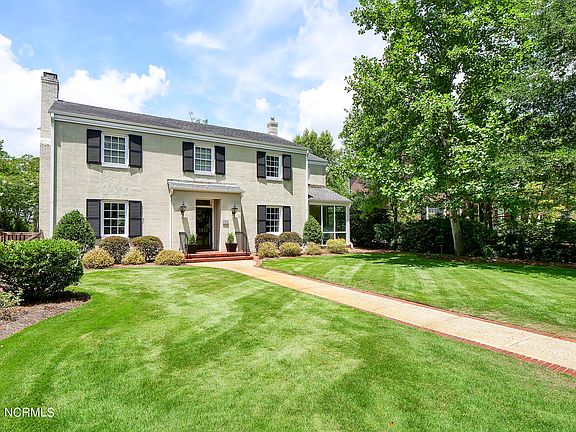 Incredible opportunity awaits with this classic, character-filled home in highly sought after Country Club Pines! You will be hard pressed to find a more picturesque setting with the canopy of Live Oaks lining this section of Country Club Rd! Offering just over 3800SQFT and 4BR/3.5BA's, this home has a generous layout all while maintaining the ultimate charm as well as functionality! Inside you are met with hardwood floors, 9' ceilings and a spacious foyer for receiving guests. The large living room features a fireplace with lots of windows ensuring a sunny space! There is also a family room/den w/ custom built-ins. The updated kitchen has quartz countertops, tiled marble backsplash, breakfast bar and stainless steel appliances including gas range and hood. Also on the main level is a spacious formal dining room and a home office perfectly tucked away offering privacy. The 2nd floor, conveniently accessible by two separate staircases, offers 4 Bedrooms, all with direct access to a bath along with a covered porch dreams are made of! The primary suite features a fireplace, 2 closets, double vanity and tiled shower/bath combo. Two bedrooms share a stunning Jill-n-Jill bath which was recently renovated to the studs. Lastly, there is a full guest suite with attached private bath, perfect for guests or in-laws! This home's outdoor spaces offer endless possibilities for entertaining and will surely impress with the mature landscaping surrounding the home, an elevated brick paver patio, landscape lighting and outdoor wood burning fireplace. Other notable features include Whole House Generator (natural gas connected), encapsulated crawlspace w/ dehumidifier, newer HVAC units (2021), newer water heaters (2019, 2021), deep well with functional irrigation, video doorbell for security and a transferrable termite bond. Be sure to note alley-access with parking for 2 cars. Look no further for a perfected blend of modern convenience and charm, this is the one!