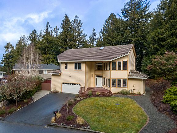 Beautiful home on a cul-de-sac, In one of the desirable areas of Arcata. Large lot with lots of sun to enjoy from the oversized living room windows over looking the greenbelt. Cathedral ceilings and lots of skylights, gas fireplace and hardwood floors. Private back yard overlooking the forest for a very serene setting. RV parking, air conditioning and walk to the Community Forest trailhead.