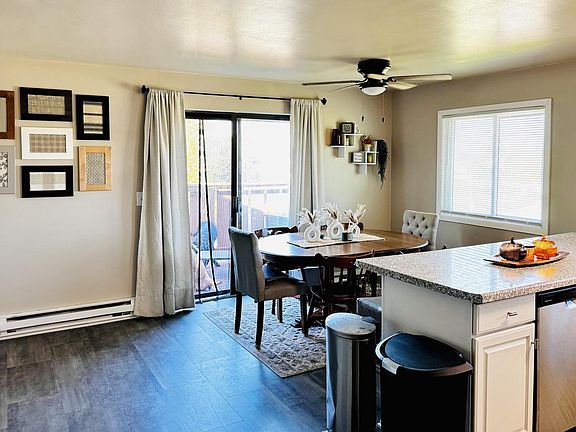 Open concept, desirable end unit with Airy feel & good size private deck with amazing sunsets. The master bedroom is a great size with pocket doors between two separate rooms, making one big room. Newer appliances, updated bath. Washer and dryer in the unit. Cozy up to the fireplace on chilly days. Private entrance. One car garage with a basement storage room to the back.